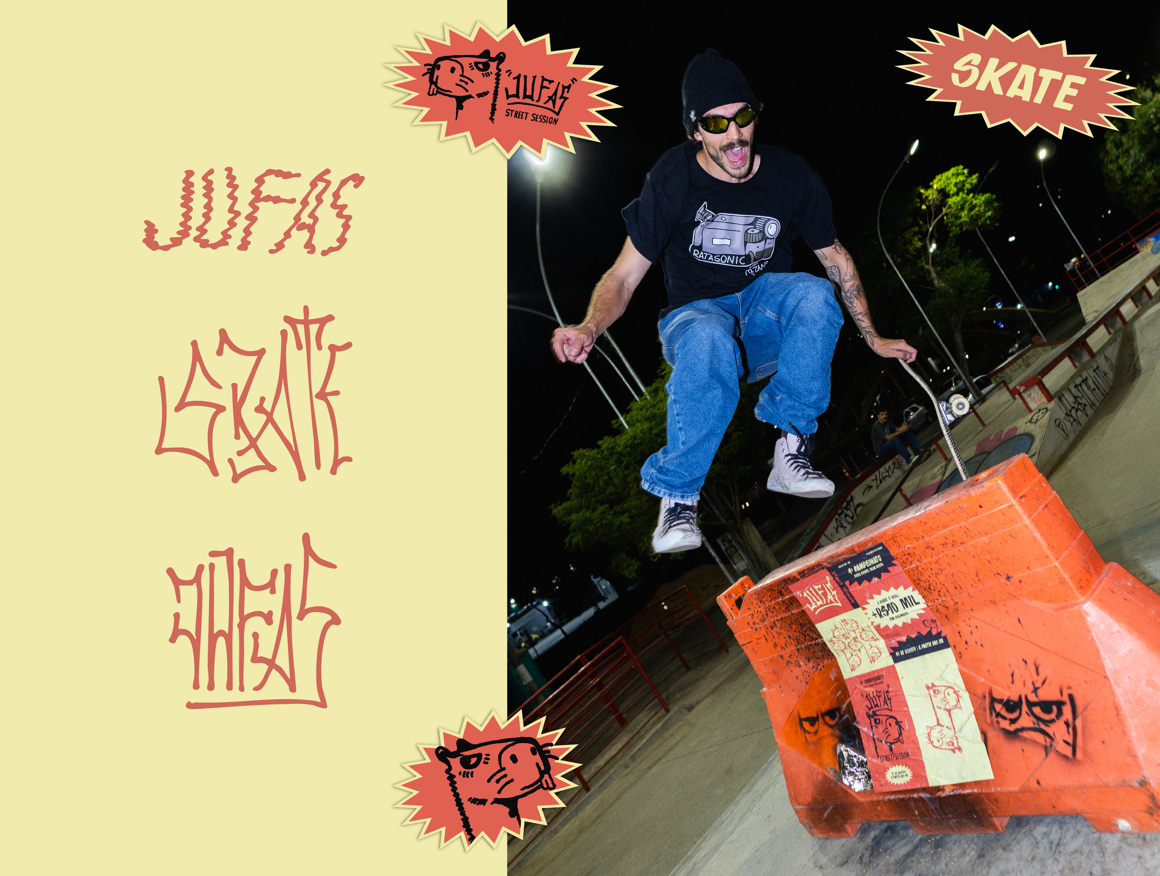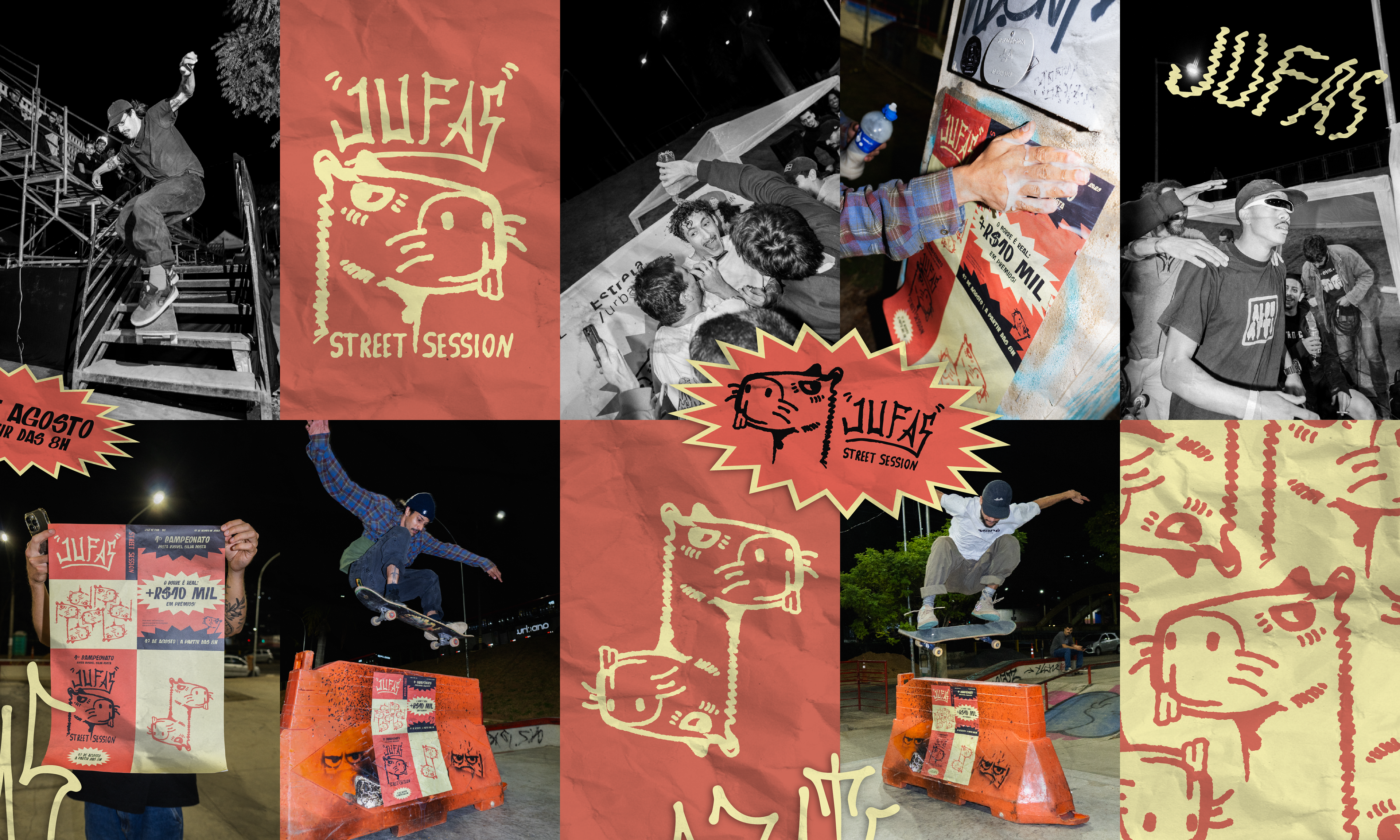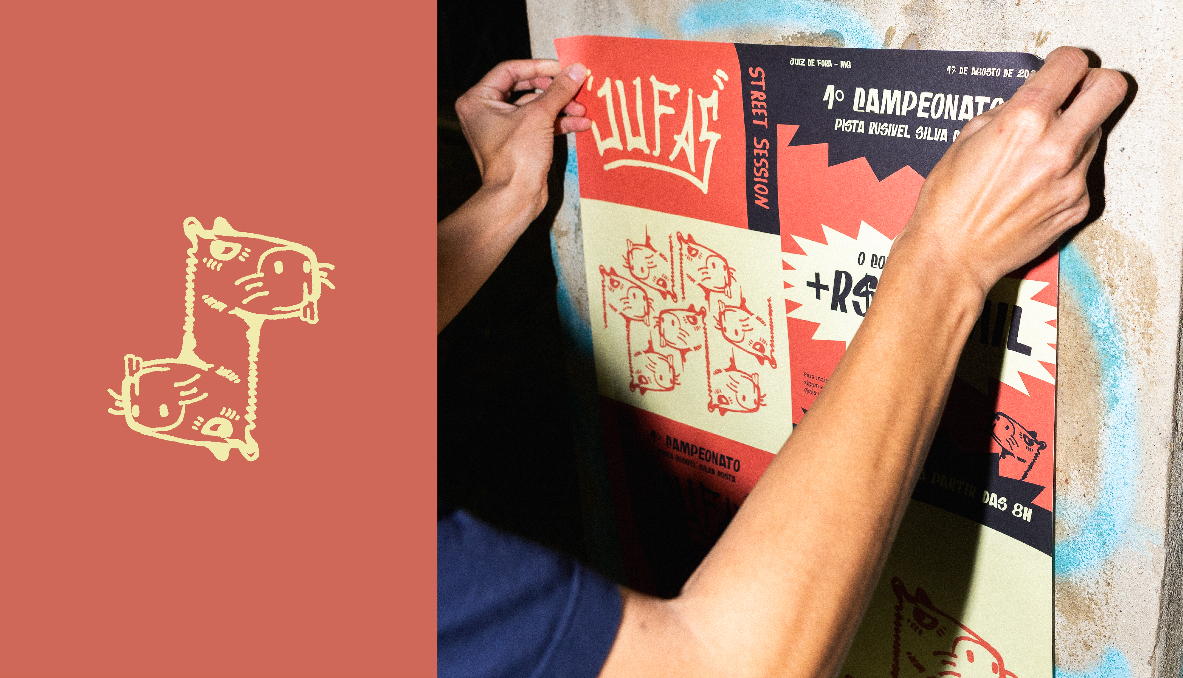 O Jufas Street Session foi o 1º campeonato de skate na Pista Rusivel Silva Costa, em Juiz de Fora – MG. Mais que um evento, um marco cultural. A identidade visual trouxe a Capivara como símbolo local, com cores vibrantes, tipografia do pixo e materiais impressos que deram força à comunicação. No dia 17 de agosto, ficou a memória coletiva e a pergunta: “Quando será o próximo?” The Jufas Street Session was the first skate championship at Pista Rusivel Silva Costa, Juiz de Fora – Brazil. More than an event, it was a cultural milestone. Its identity featured the Capybara, vibrant colors, graffiti-inspired type, and printed materials that shaped a strong communication. On August 17th, it became a collective memory, leaving one question: “When’s the next one?”